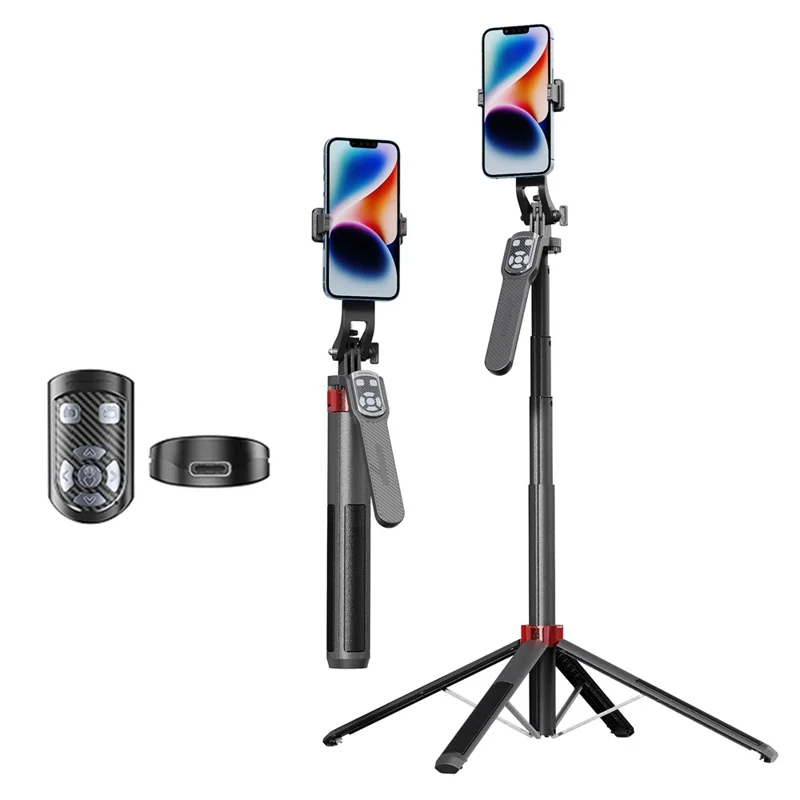 P185TK Phone Holder Live Streaming Four-Leg Floor Stand Extendable Bluetooth-compatible Selfie Stick