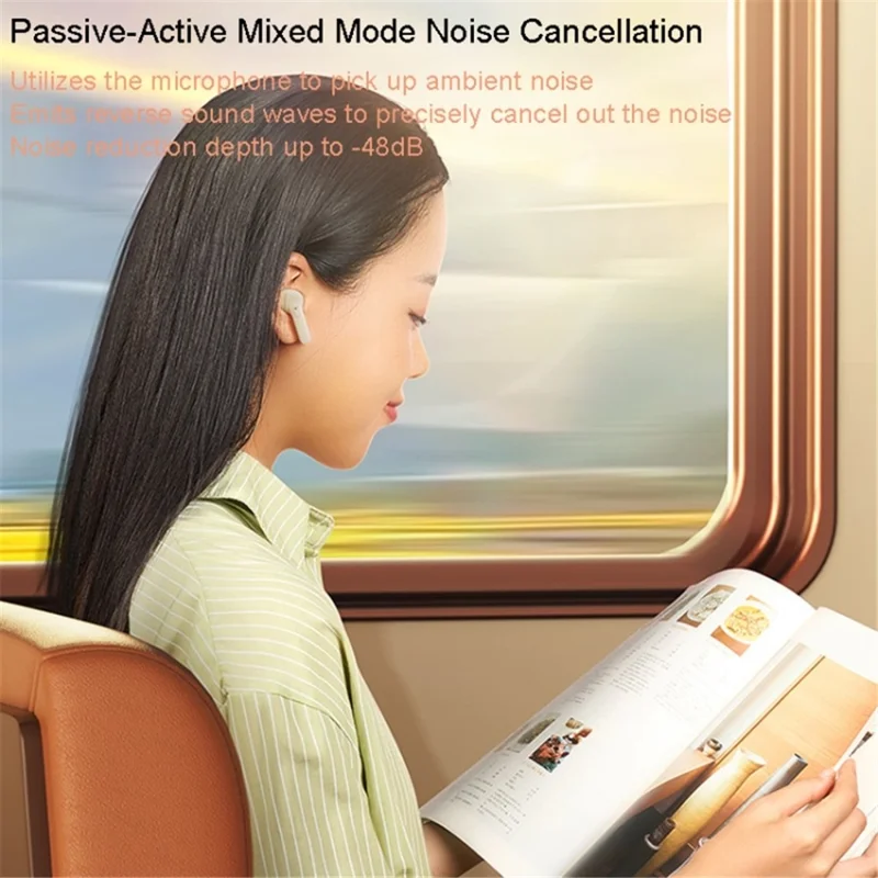 Clear Sound: The hybrid noise reduction technology combines passive and active noise cancellation techniques, capturing external environmental noise through the microphones and emitting anti-noise sound waves to cancel it out, achieving a maximum noise reduction of -48dB
