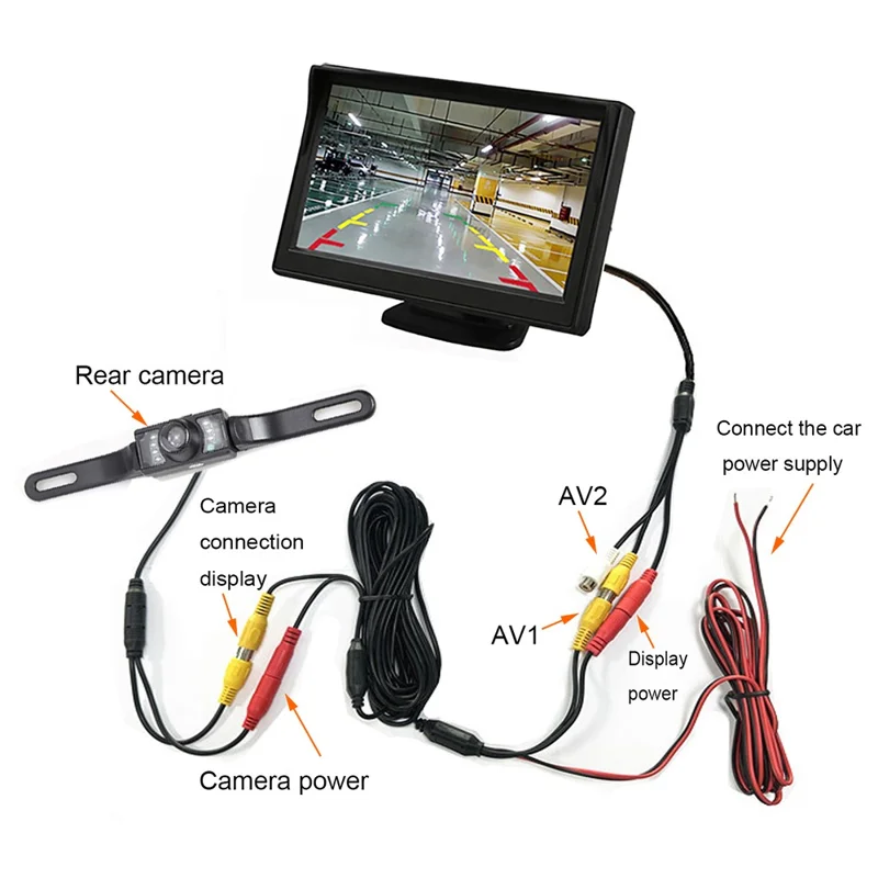 Can be connected to the reverse system. When reversing, the signal on the display will automatically wake up, and the rear image of the display will automatically turn off after reversing, making it more user-friendly