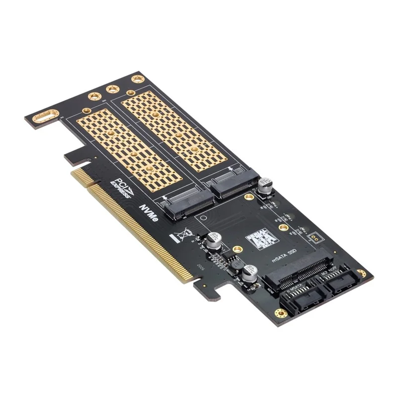 SA-028 3-in-1 PCI Express PCI-E 3.0 + Dual SATA to NGFF NVME mSATA M-Key B/M-key SSD Card Adapter