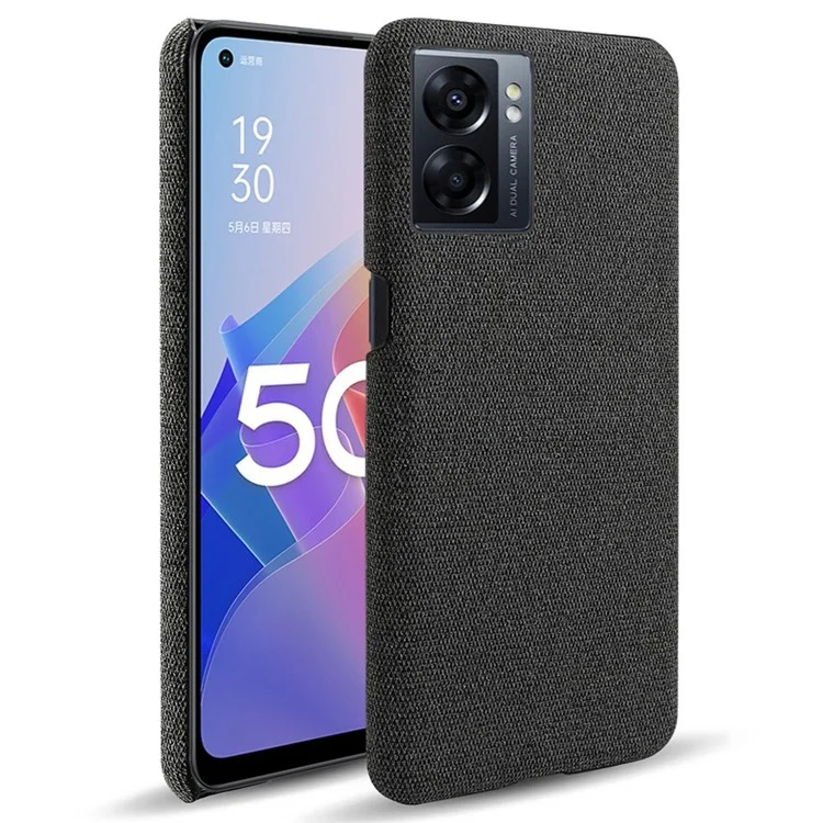 Smartphone Case Shell for Oppo A57 (2022) 5G / A77 5G, Drop Resistant Solid Color Hard PC+Cloth Phone Cover - Black