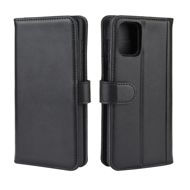 For Samsung Galaxy A71 Phone Cases Genuine Split Leather Wallet Mobile Cover Stand - Black