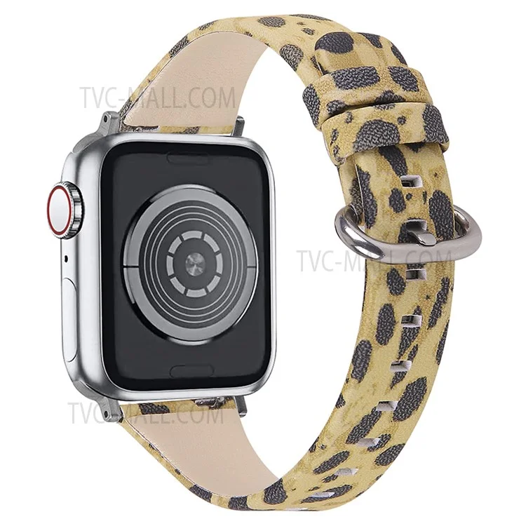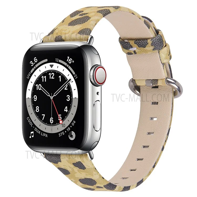 Top Layer Cowhide Genuine Leather Leopard Pattern Strap Round Tail Watchband for Apple Watch Ultra 2 49mm / Series 9 45mm / SE (2023) 44mm / Ultra 49mm / Series 8 45mm / 7 45mm / Watch Series 6 / SE 44mm / SE (2022) 44mm / 5 / 4 44mm / Watch Series 3 / 2 / 1 42mm - Army Green Leopard