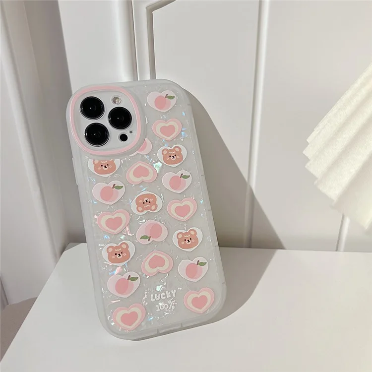 TPU Phone Case For iPhone 14 Pro Max , Peach Bear Pattern Decor Phone Shell Flexible Cover with Pearl Chain