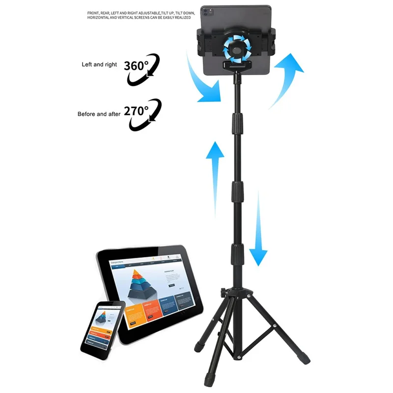Universal Mobile Phone Tablet Holder Floor Stand 360 Degree Rotating Retractable Tripod Bracket, Thicken Version