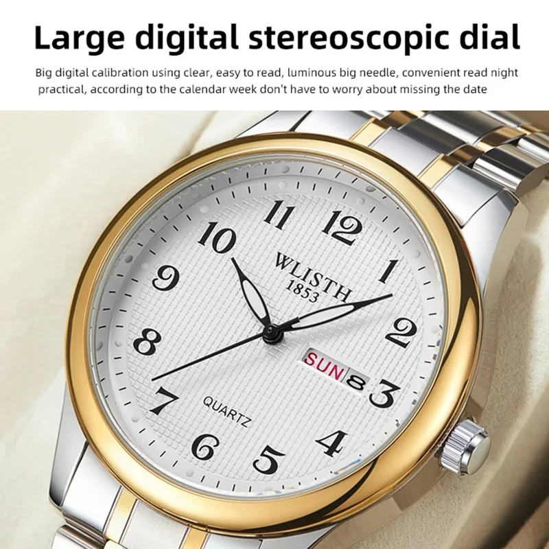 WLISTH S6150 Quartz Watch Luminous Wrist Bracelet with Stainless Steel Strap - Gold / for Men