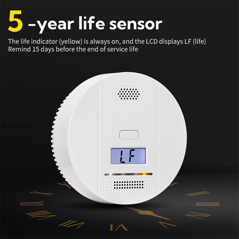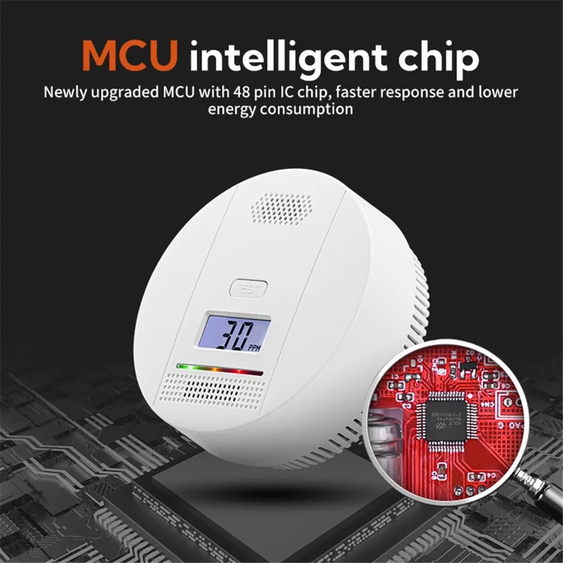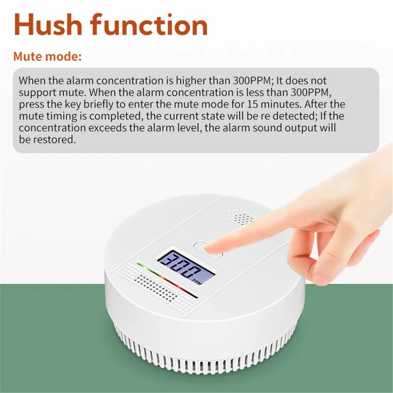 • 24-Hour Monitoring with LCD Display: The built-in LCD display shows real-time CO levels, allowing you to monitor your environment's safety. The alarm has a wide detection range, from 0 to 999 PPM, offering comprehensive coverage