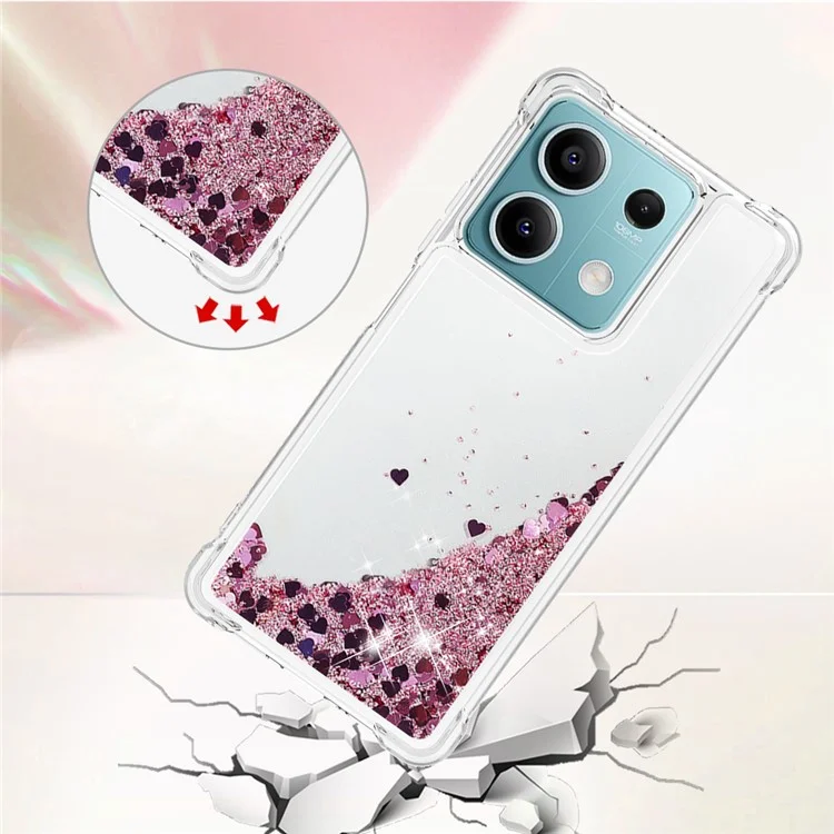 For Xiaomi Redmi Note 13 5G TPU Case Glitter Quicksand Shockproof Phone Back Cover - Rose Gold / Hearts