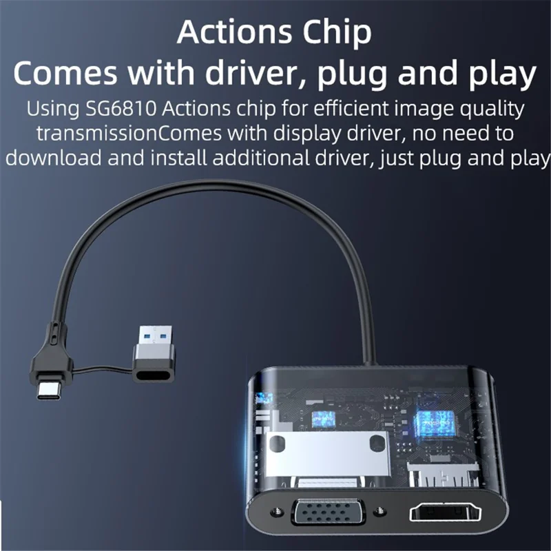 Designed with display driver, no need to download and install additional driver, just plug and play