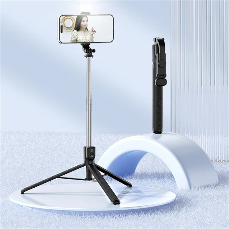Z165S 1.7m Handheld Bluetooth-compatible Selfie Stick Extendable Phone Stand Tripod with Light Remote Control - Black