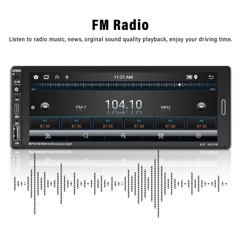 • HD 6.9-inch 2.5D screen IPS tempered glass automatic radio player