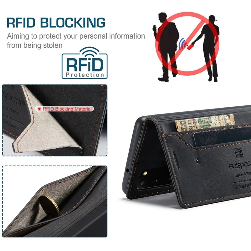 • AUTSPACE A01 Series for Samsung Galaxy S20 4G/5G PU Leather Case RFID Blocking Wallet Flip Stand Cover - Black