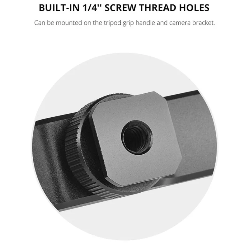 El tornillo de 1/4 '' en la parte inferior se puede usar ampliamente en trípodes, teléfonos inteligentes y jaulas de la cámara, que es compatible con la mayoría de los dispositivos de instalación