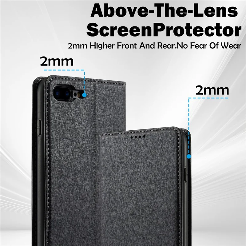 LC.IMEEKE L1 Series for iPhone 8 Plus / 7 Plus Case PU Leather Wallet Stand Protective Phone Cover - Black