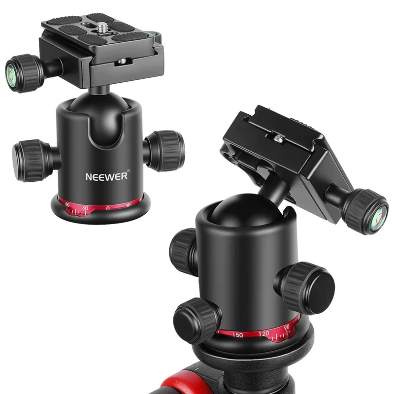 Panoramic Ball Head: Securely attaches a camera to the tripod while allowing you to change the composition quickly with 3 adjustment knobs and the Arca Type quick release plate. 2 bubble levels to keep your photos look straight