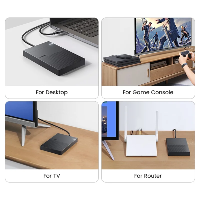 Portable External Storage: UGREEN 2.5" hard drive enclosure can easily connect your 2.5 Inch SSD&HDD to a PC, laptop, game console, router for data transfer. It protects the hard disk from outside scratches and makes SATA hard drive portable for data storage. Maximize the use of your 2.5" HDD and SSD again, perfectly protecting what you love and cherish