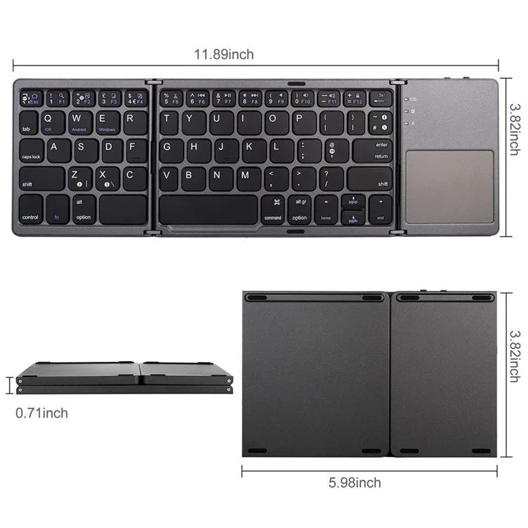 Wireless Bluetooth-Compatible Keyboard Mini Tri-Fold Keyboard with Touchpad for Tablet Phone Computer - Black