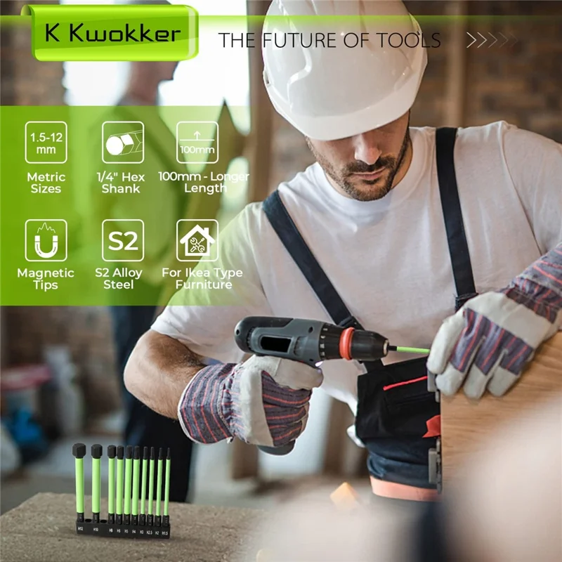 • 【Versatile Metric Sizes】Set includes 10 pieces drawdriver bits with metric sizes ranging from 1.5mm to 12mm, suitable for a variety of precision hexagonal wrench applications