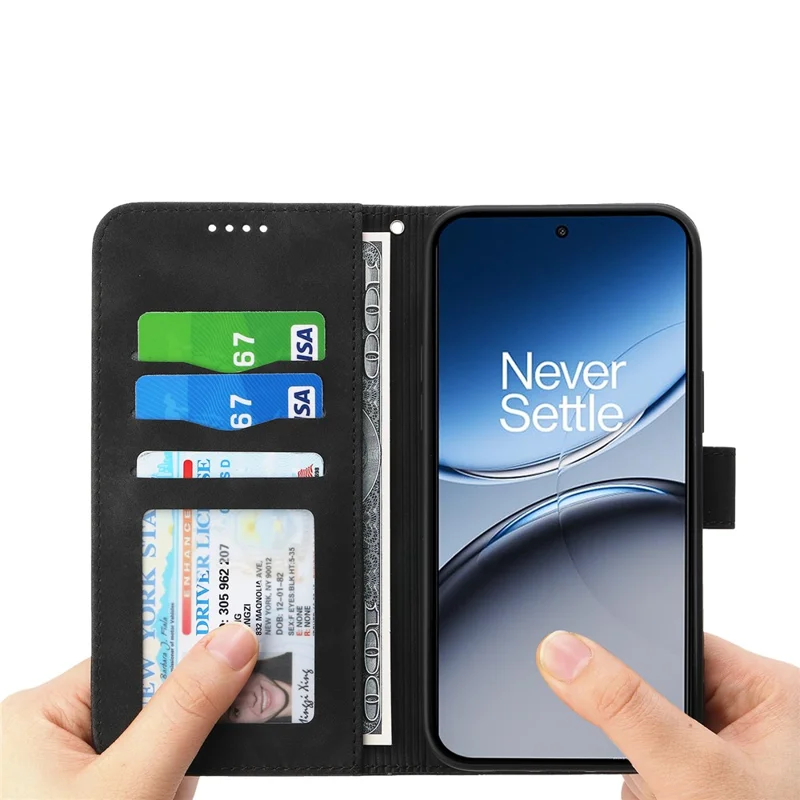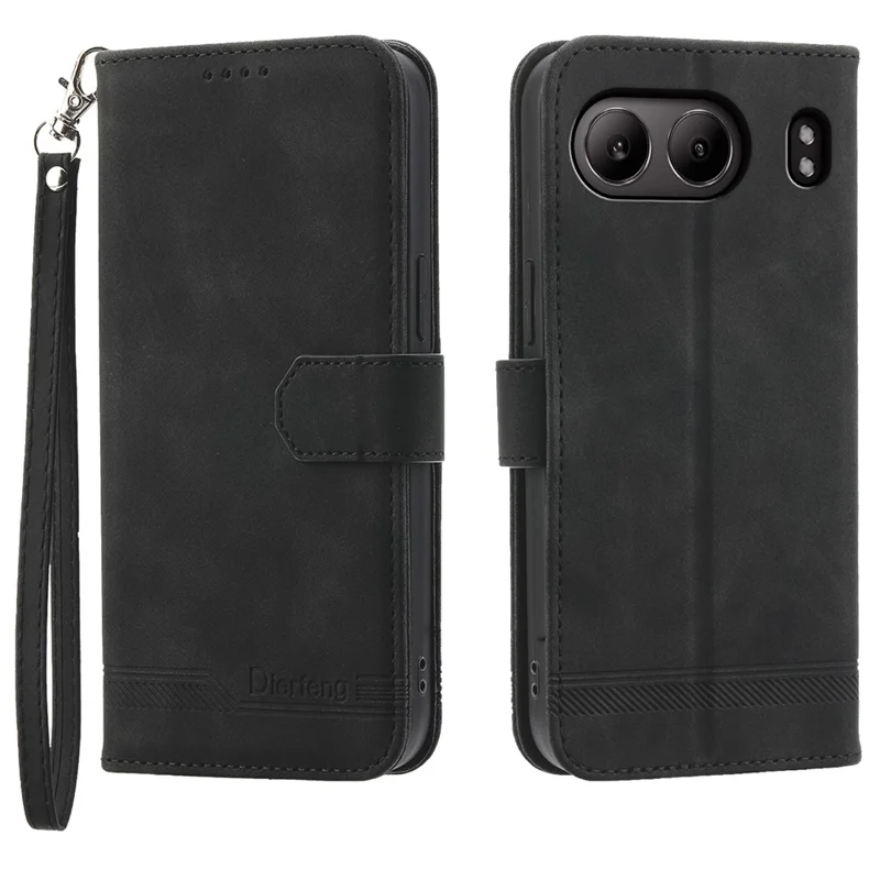 DIERFENG DF-03 For OnePlus Nord 4 Leather Case Lines Imprint Wallet Phone Cover - Black