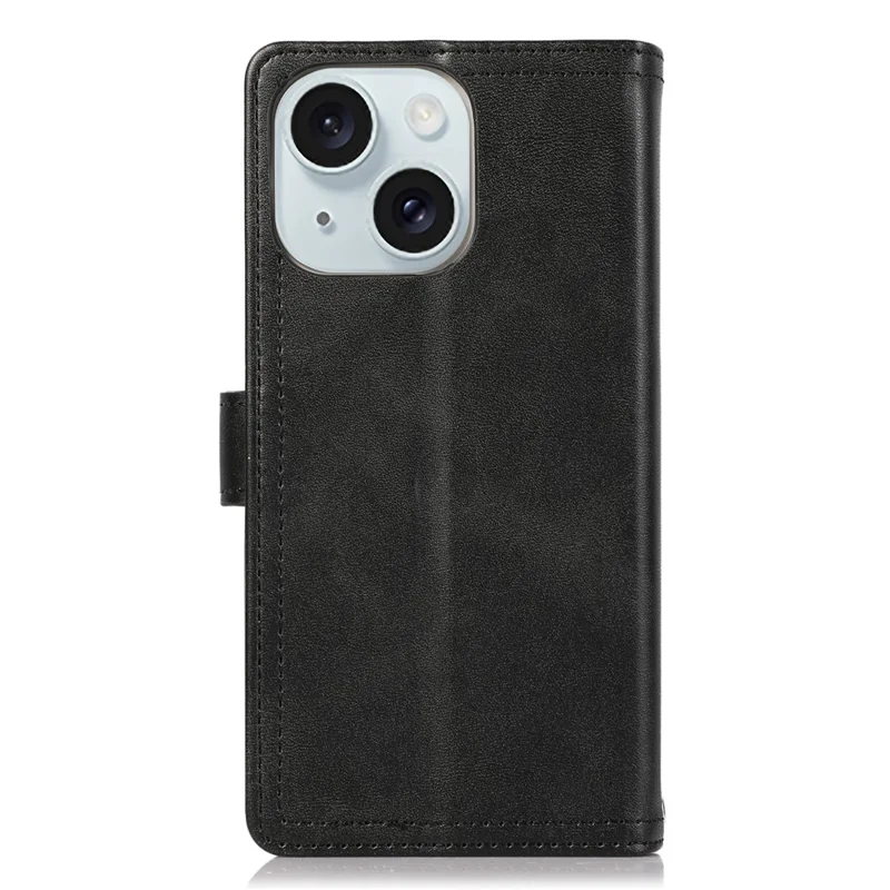 Per iPhone 15 Plus Split Leather Folio Case Stand Multiple Card Slots Wallet Phone Cover with Strap - Nero
