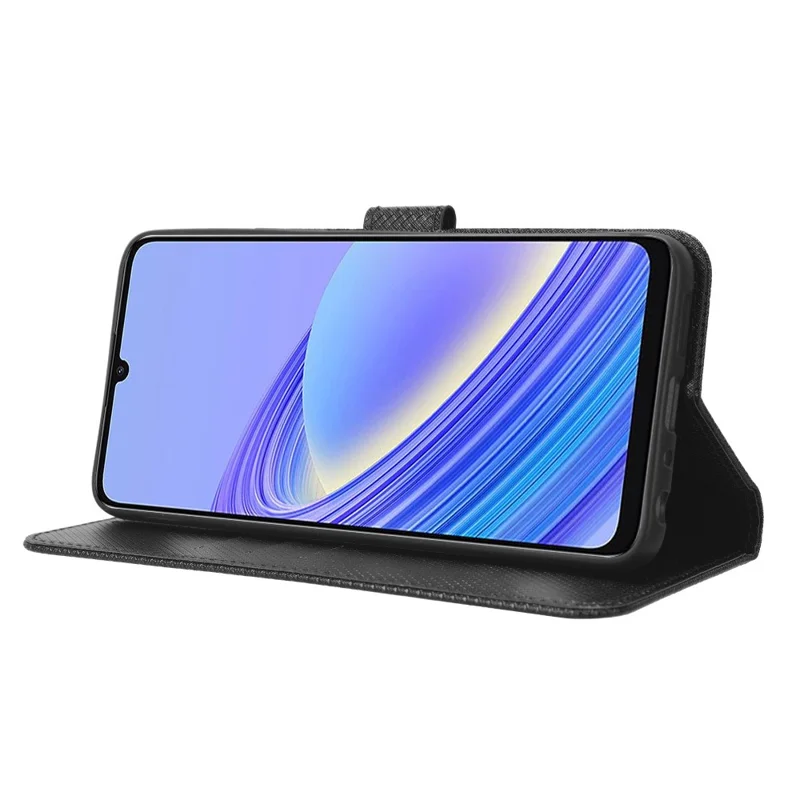 Per TCL 40 SE Foldable Stand Flip Wallet Phone Cover Diamond Texture PU Leather Phone Case - Black
