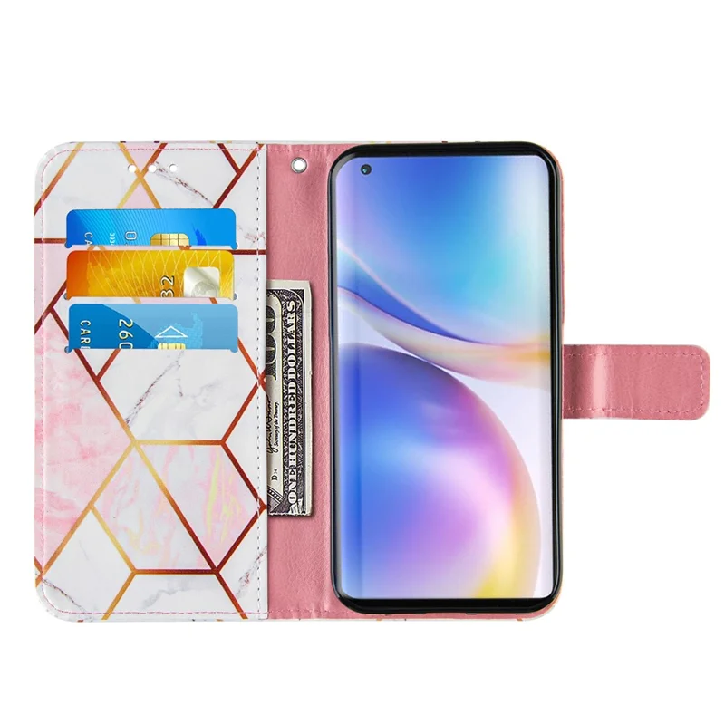 Splicing Marble Pattern Stand Leather Case with Lanyard for OnePlus 9 (EU / US Version) - Style A