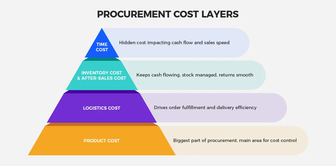 A maior parte do custo de aquisição vem do próprio produto. Uma vez que escolhe um fornecedor, há pouca margem para reduzir custos, razão pela qual uma pesquisa cuidadosa no início é essencial. Compreender como encontrar fornecedores fiáveis é o primeiro passo para controlar os custos de aquisição.