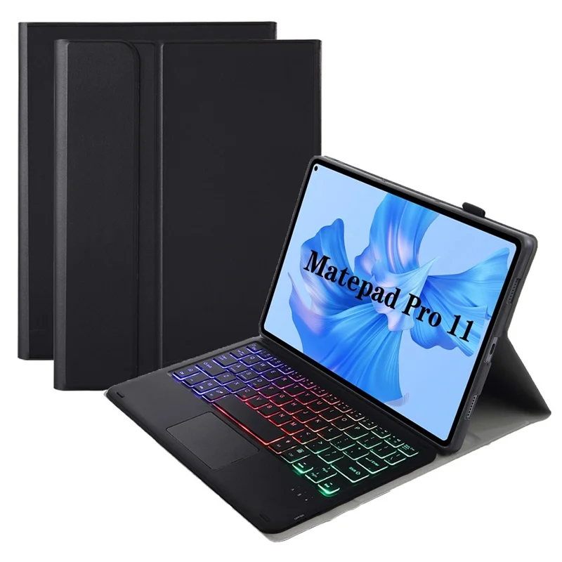 AHW12-AS Para Huawei MatePad Pro 11 (2022) Teclado Bluetooth Compatível com Retroiluminação de 3 Cores com TouchPad Capa Anti-Queda em Pele PU+TPU - Preto