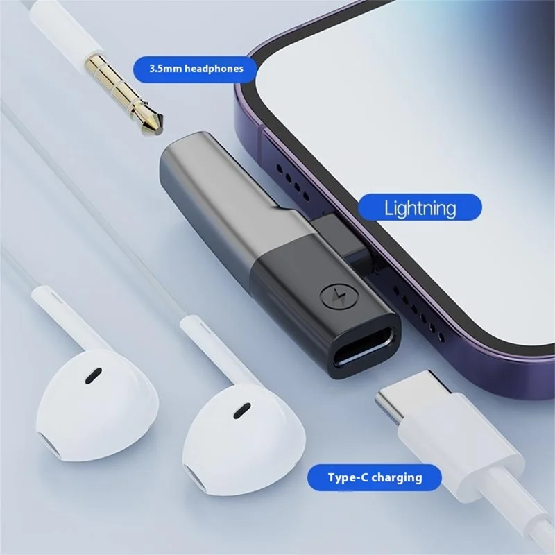 DAC Chip 8-Pin to 3.5mm Audio + Type-C Charging Port Adapter for iPhone - Grey