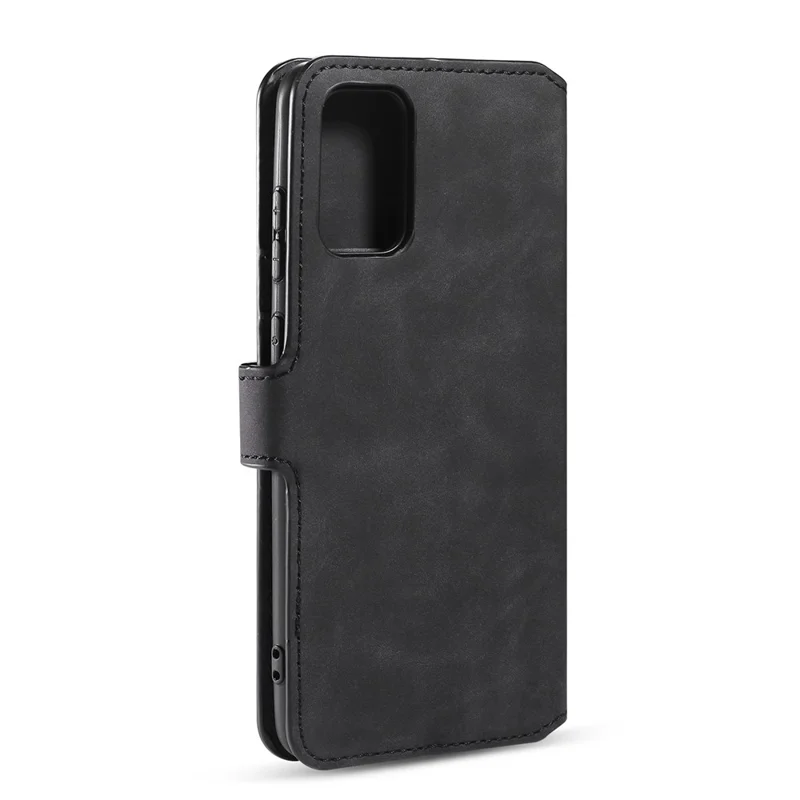 • DG.MING Retro Style Leather Wallet Stand Protective Shell Case for Samsung Galaxy S20 4G/S20 5G - Black