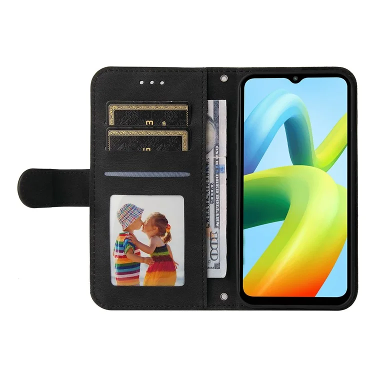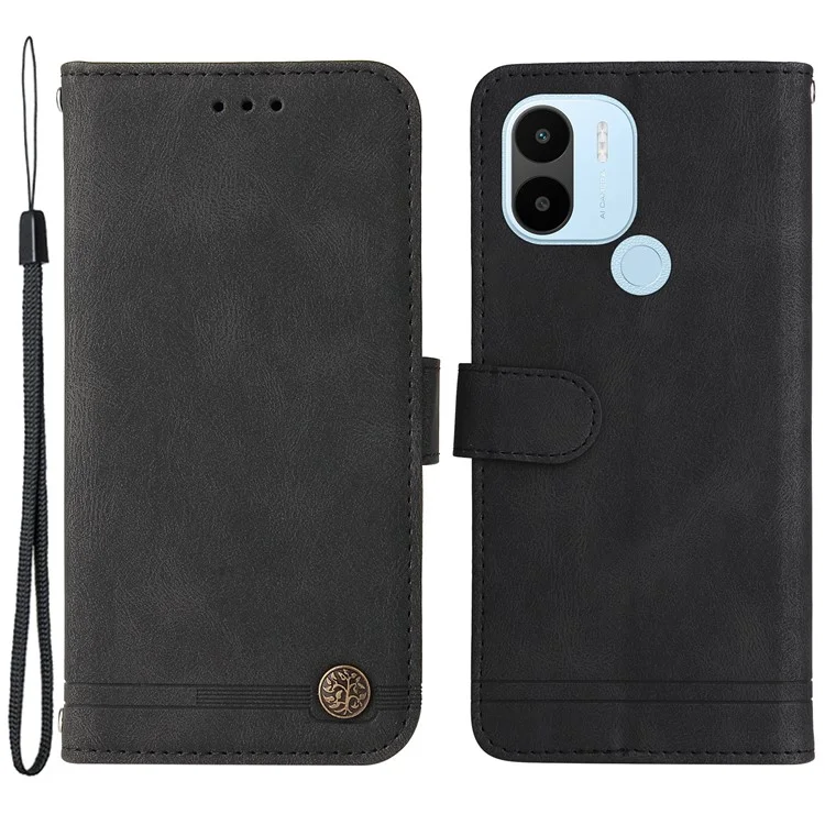 Чехол-кошелек из искусственной кожи для Xiaomi Redmi A1+ 4G / A2+ 4G / Poco C50 4G (с отверстием для сканера отпечатков пальцев), чехол с подставкой и ремешком, тактильное покрытие, черный