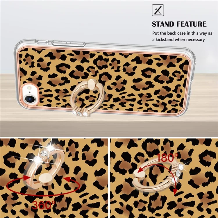 • YB IMD Series-20 Style D For iPhone 7 / 8 / SE (2020) / SE (2022) Anti-Fall 2.0mm TPU Case Kickstand IMD Electroplating Phone Cover - Leopard